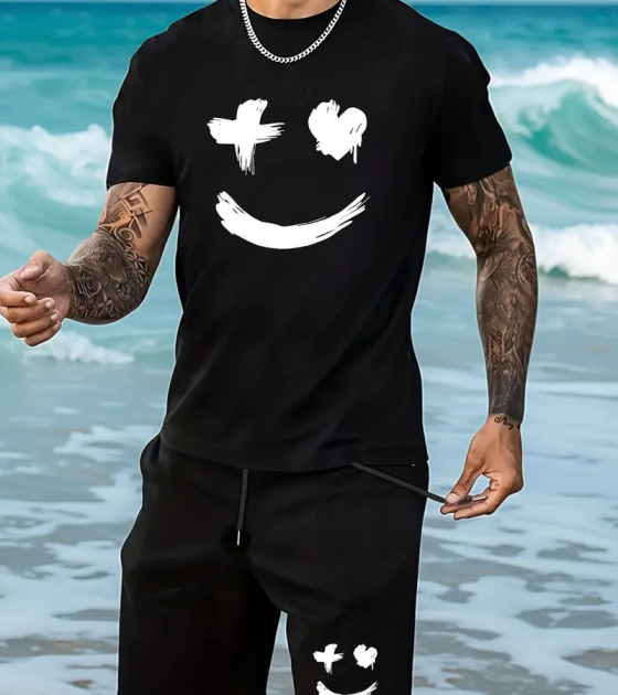 文名称:男士短袖双侧裤袋短裤套装英文名称:产品货号:P0054生产工艺: 满印印花产品材质:鸟眼布
