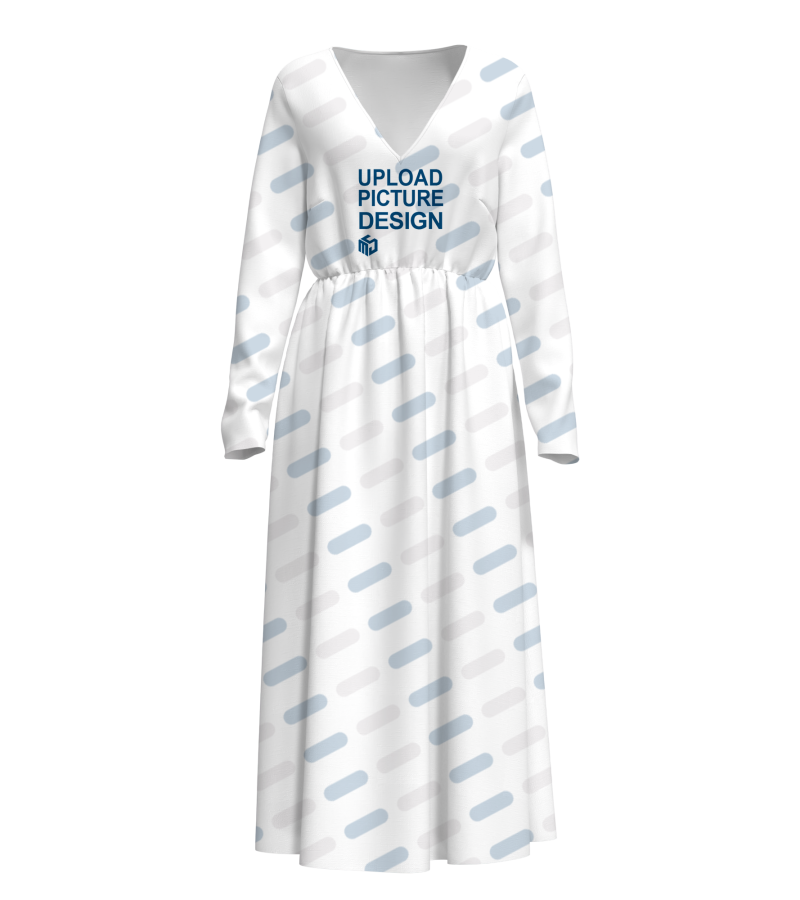 中文名称:女士长袖V领长连衣裙英文名称:产品货号:LTWJ20215生产工艺: 满印印花产品材质:竹节麻