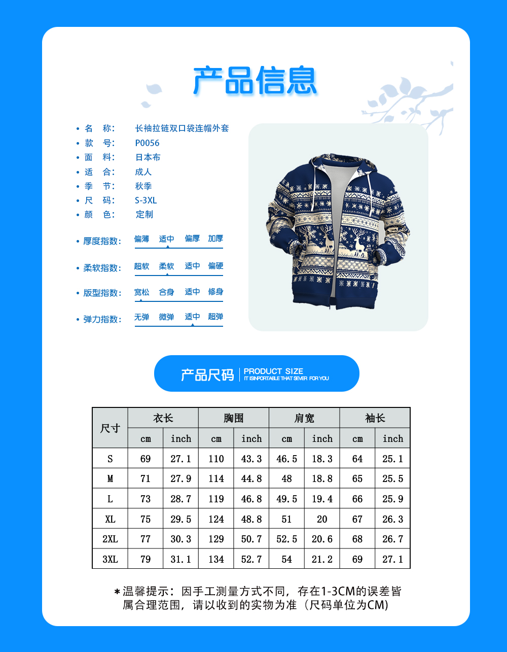 中文名称:男士长袖拉链双口袋连帽外套英文名称:产品货号:P0056生产工艺: 满印印花产品材质: 日本布