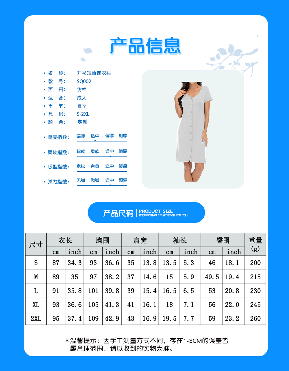 【适用场景】适合居家,适合春季、夏季和秋季穿着。