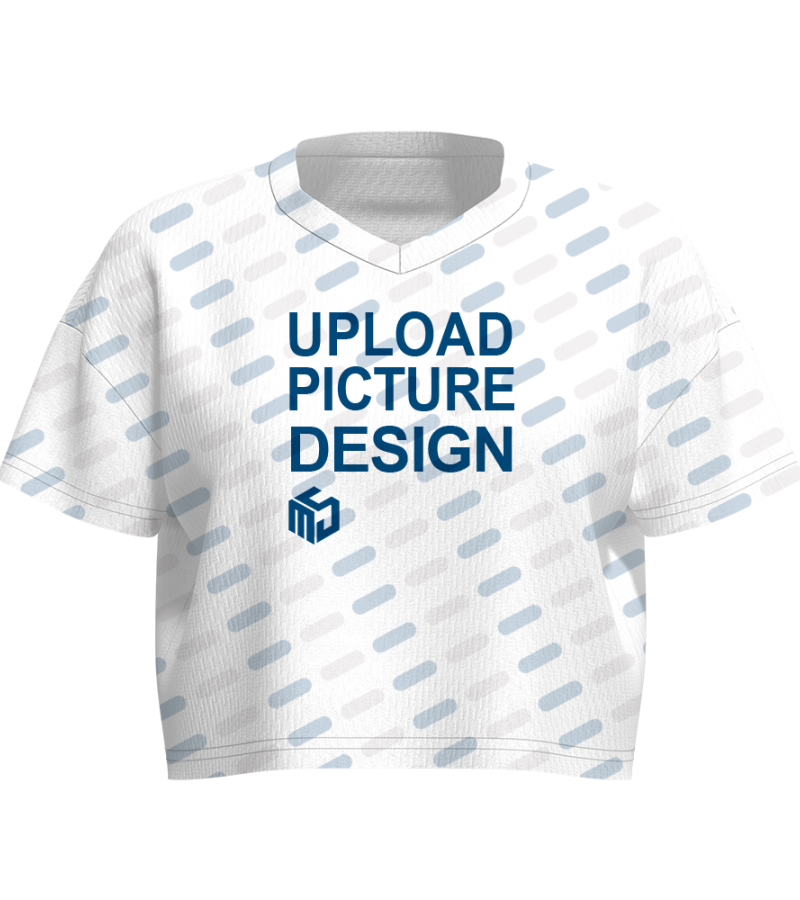 中文名称: 女士短款V领足球服英文名称:产品货号: A0265生产工艺: 满印印花产品材质:鸟眼布