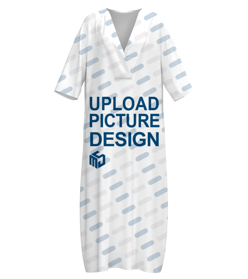 中文名称:女士v领长裙英文名称:产品货号:ZC005A生产工艺: 满印印花产品材质:平板布