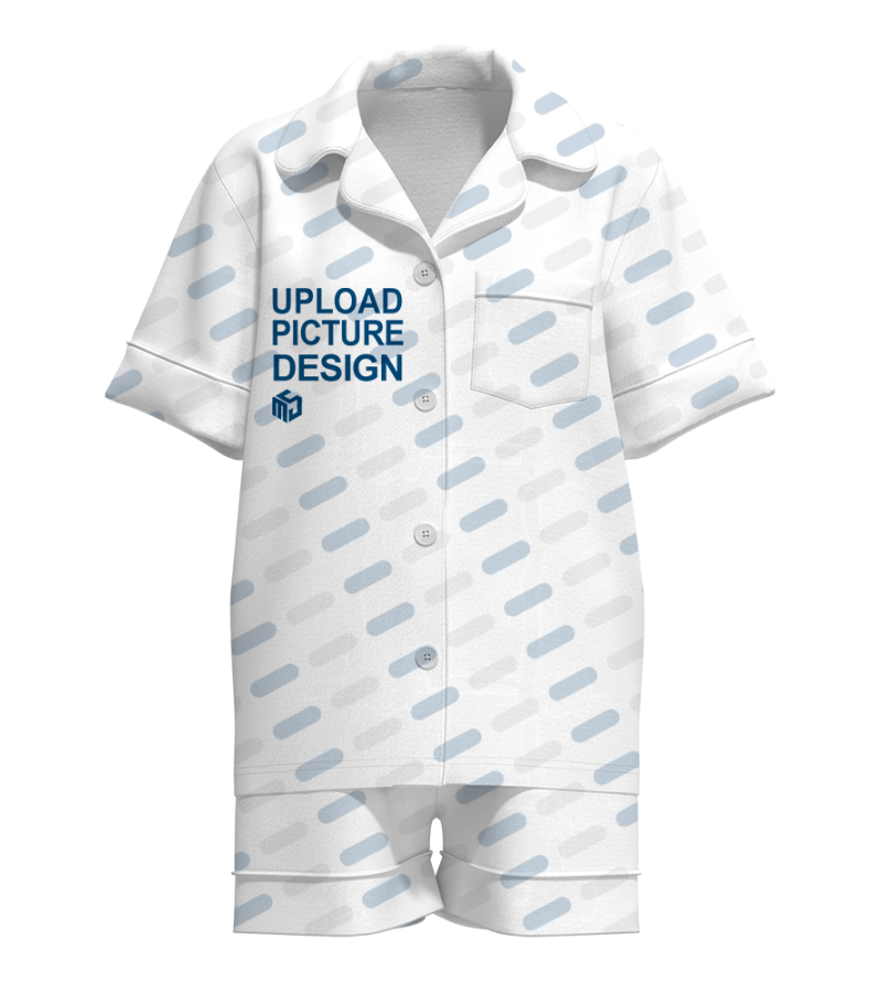中文名称:翻领仿棉短款家居套装有袋有脚口有袖口英文名称: Ice thread short set产品货号:R0182A生产工艺: 满印印花产品材质: 冰丝