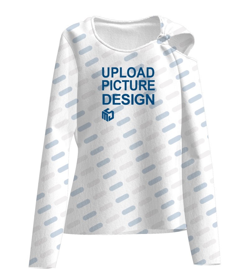 中文名称: 左肩露肩长袖上衣英文名称:产品编号:A0226产工艺: 满印印花产品材质: 仿棉