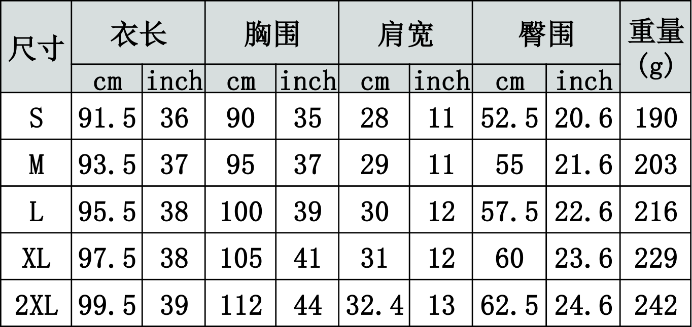 【特别说明】此尺码数据在衣服平铺下测量所得,因测量方法不同,误差在1-3cm内的属于正常现象