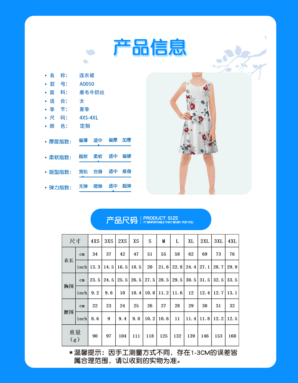 中文名称: 连衣裙英文名称: 产品编号:A0050X生产工艺: 满印印花产品材质: 磨毛牛奶丝