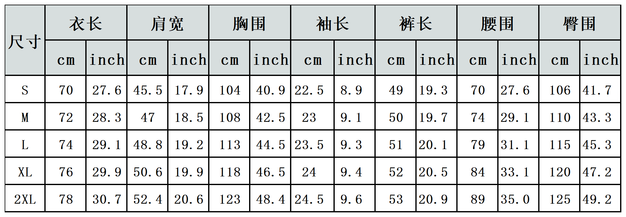 【特别说明】此尺码数据在衣服平铺下测量所得,因测量方法不同,误差在1-3cm内的属于正常现象