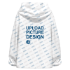 【配件构造】带帽加白色帽绳,前面有袋鼠式口袋。袖口下摆内置松紧带。