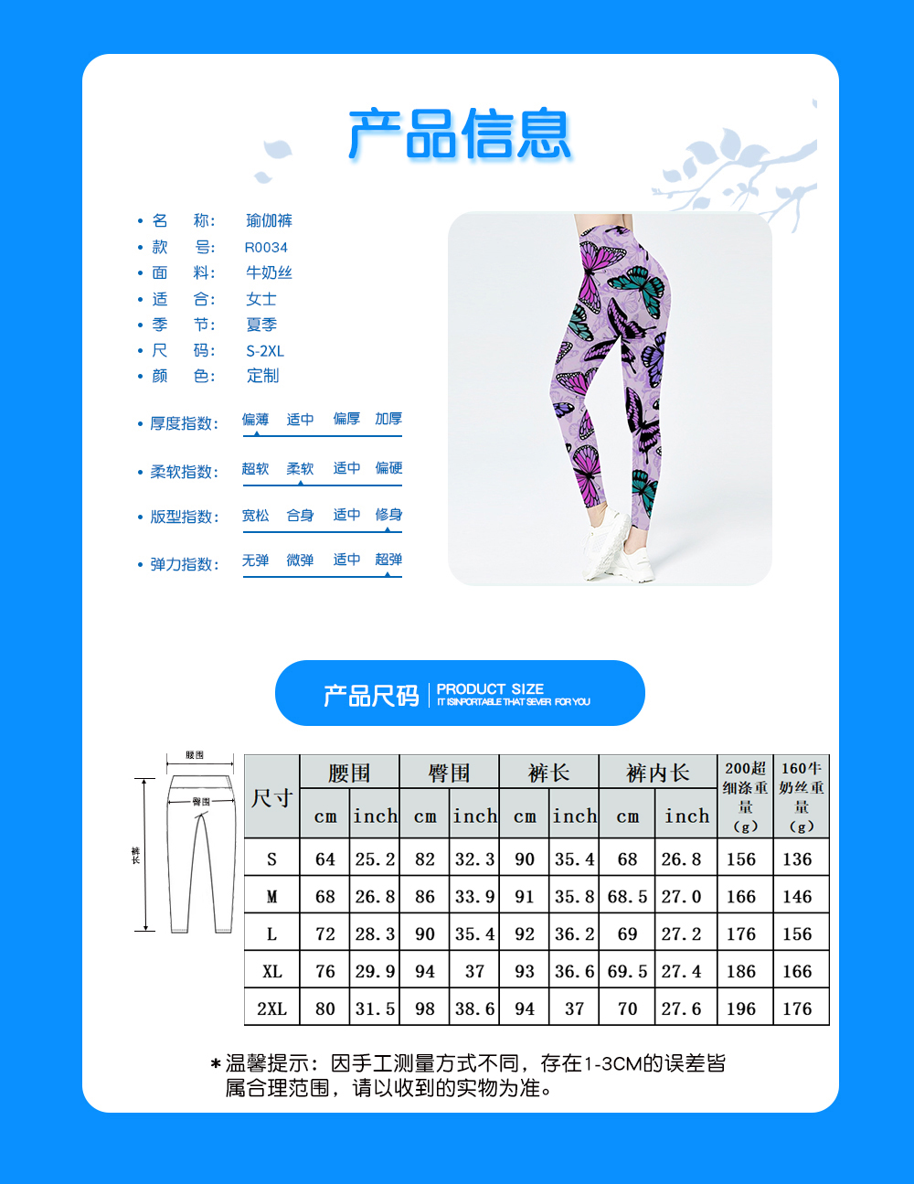 【产品性能】瑜伽裤,弹性好,柔软亲肤,轻薄排汗不粘腻;运动更加自由。弹力下摆,选用优质弹力带,松紧有度。