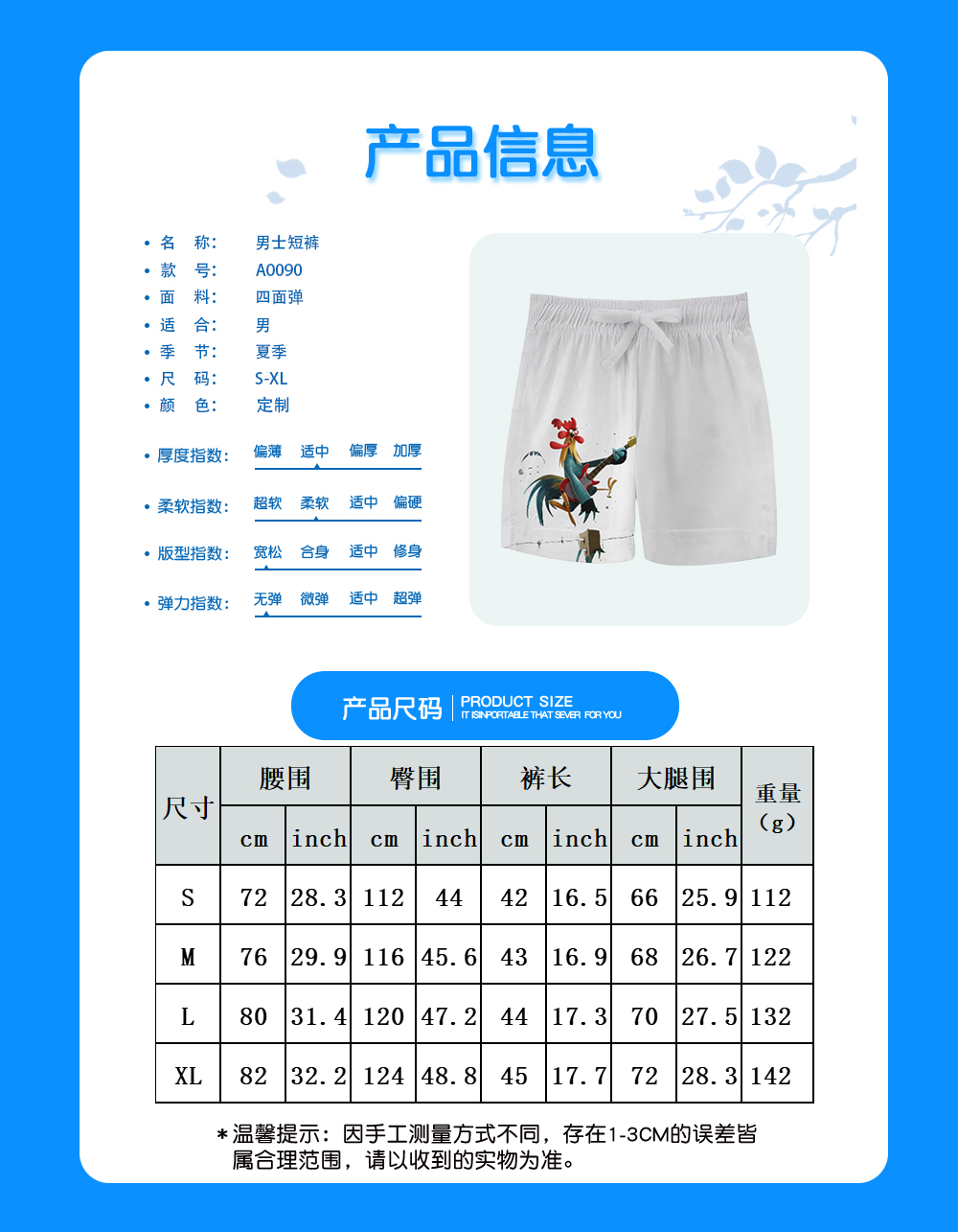 中文名称:短裤英文名称:产品货号:A0090X生产工艺: 满印印花产品材质: 四面弹