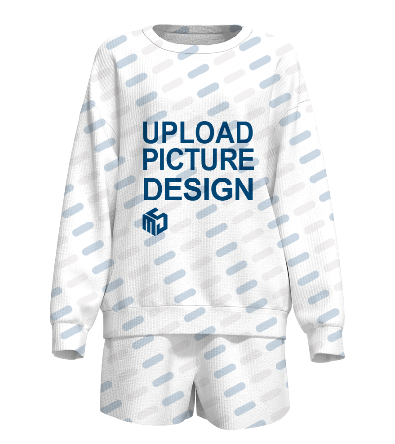 文名称:女士长袖圆领短裤套装有袋有袖口无脚口英文名称:产品货号:XHY067生产工艺: 满印印花产品材质:灯芯绒