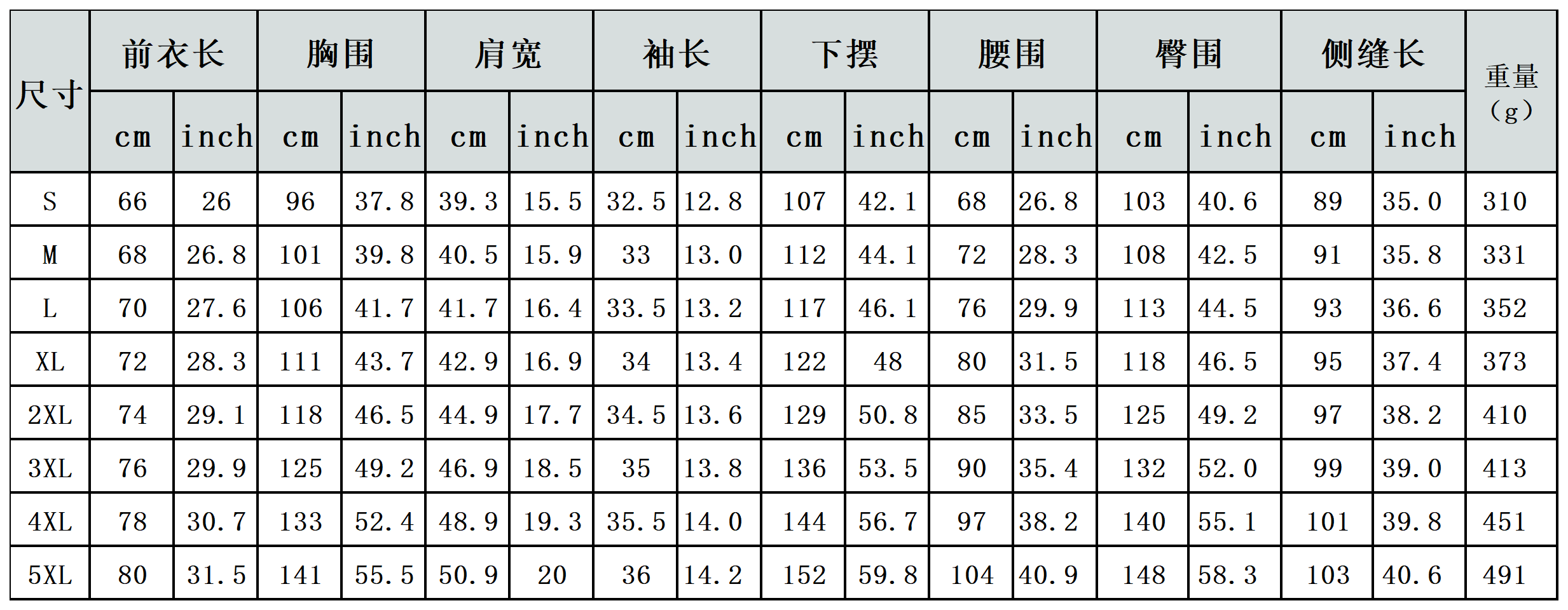 【特别说明】此尺码数据在衣服平铺下测量所得,因测量方法不同,误差在1-3cm内的属于正常现象