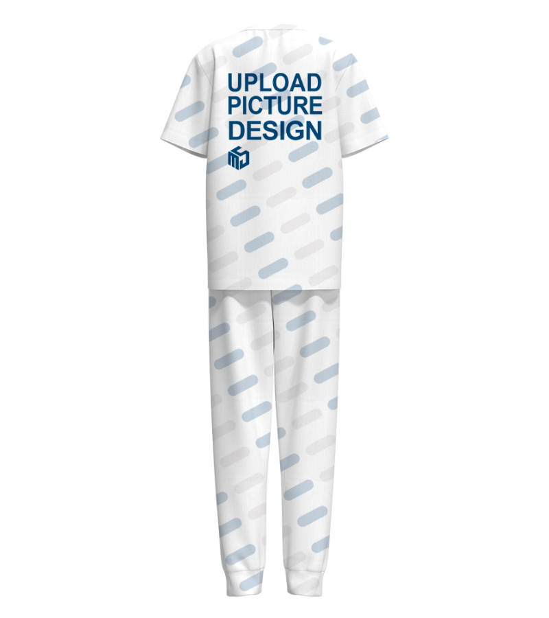 中文名称:圆领女士短袖长裤套装有袖口无脚口无袋英文名称:产品编号:R0146X产工艺: 满印印花产品材质: 仿棉