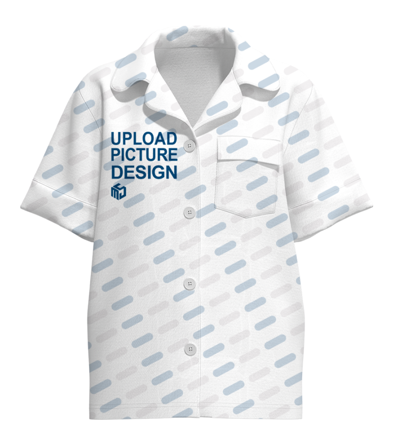 中文名称:女士古巴领左前袋有袖口短袖冰丝上衣英文名称: Ice thread short set产品货号:R0029XAB-A生产工艺: 满印印花产品材质: 涤纶(Polyester)