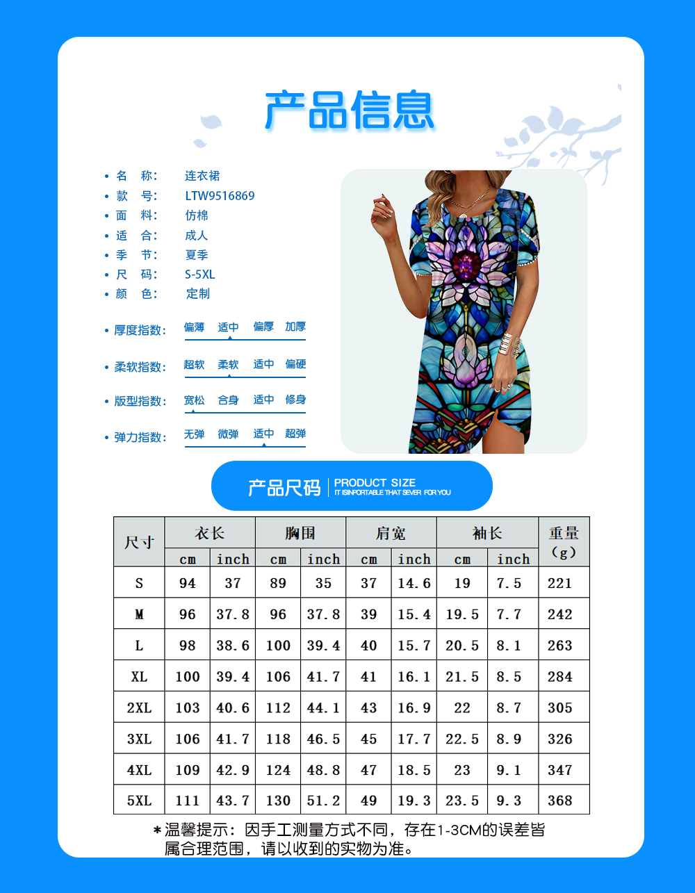 中文名称:连衣裙 英文名称:产品货号:LTW9516869生产工艺: 满印印花产品材质:仿棉