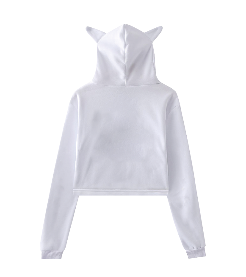 中文名称: 3D 猫耳朵卫衣露脐装 英文名称: Cat ear hoodie with bare midriff 产品编号:A0011生产工艺: 满印印花产品材质:220g空气层