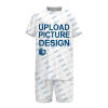 中文名称:儿童球服套装有脚口袖口无口袋英文名称: Kids Ball Game Uniform Set with Cuffs & Leg Openings, No Pockets 产品货号:QF001生产工艺: 满印印花产品材质:针眼布