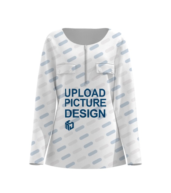 女螺纹坑条圆领门襟半拉链长袖T恤LTW20663