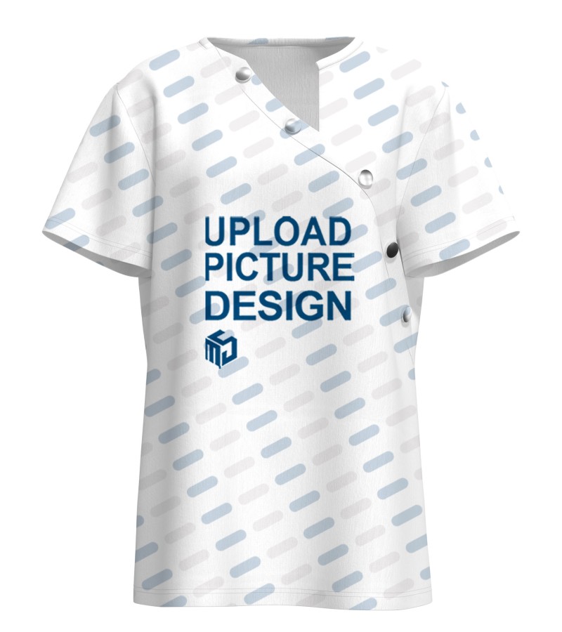 中文名称:不规则V领带5粒纽扣短袖T恤英文名称:产品货号:PDDW20390生产工艺: 满印印花产品材质: 仿棉