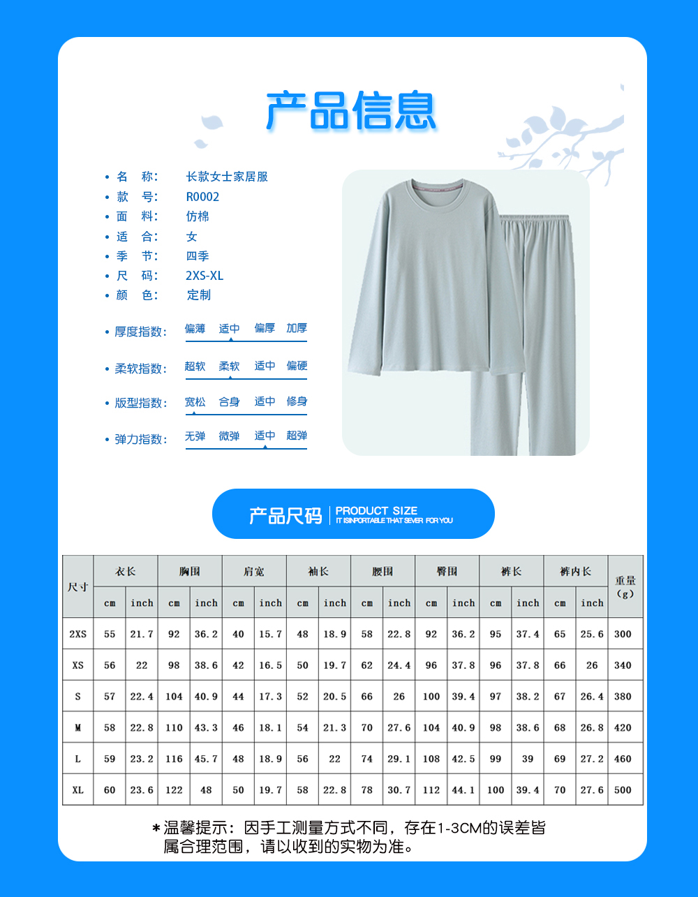 【适用场景】适合居家,适合春季、夏季和秋季穿着。