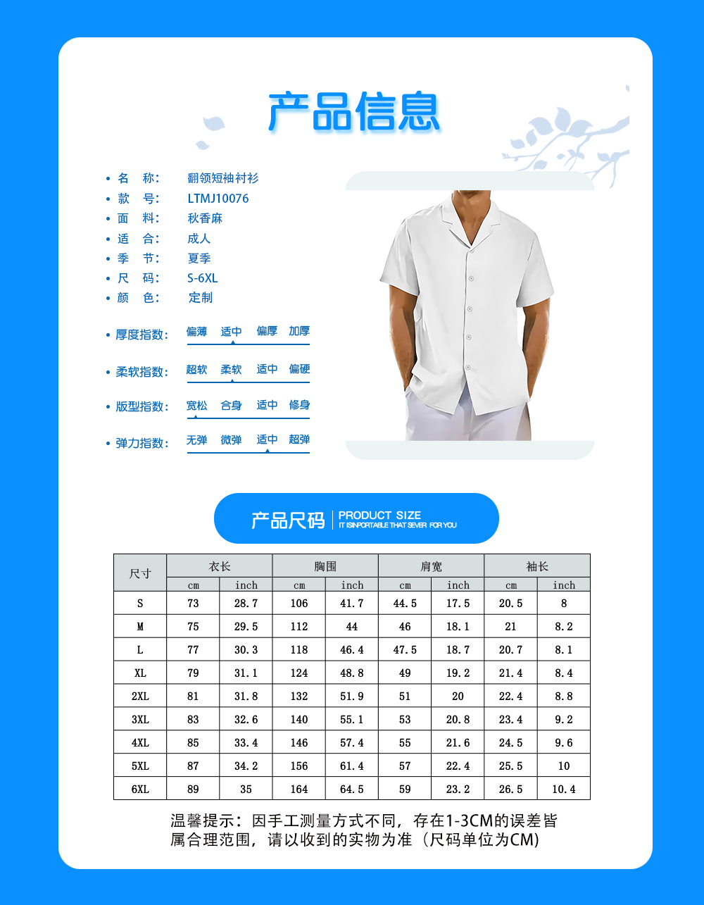 【特别说明】此尺码数据在衣服平铺下测量所得,因测量方法不同,误差在1-3cm内的属于正常现象
