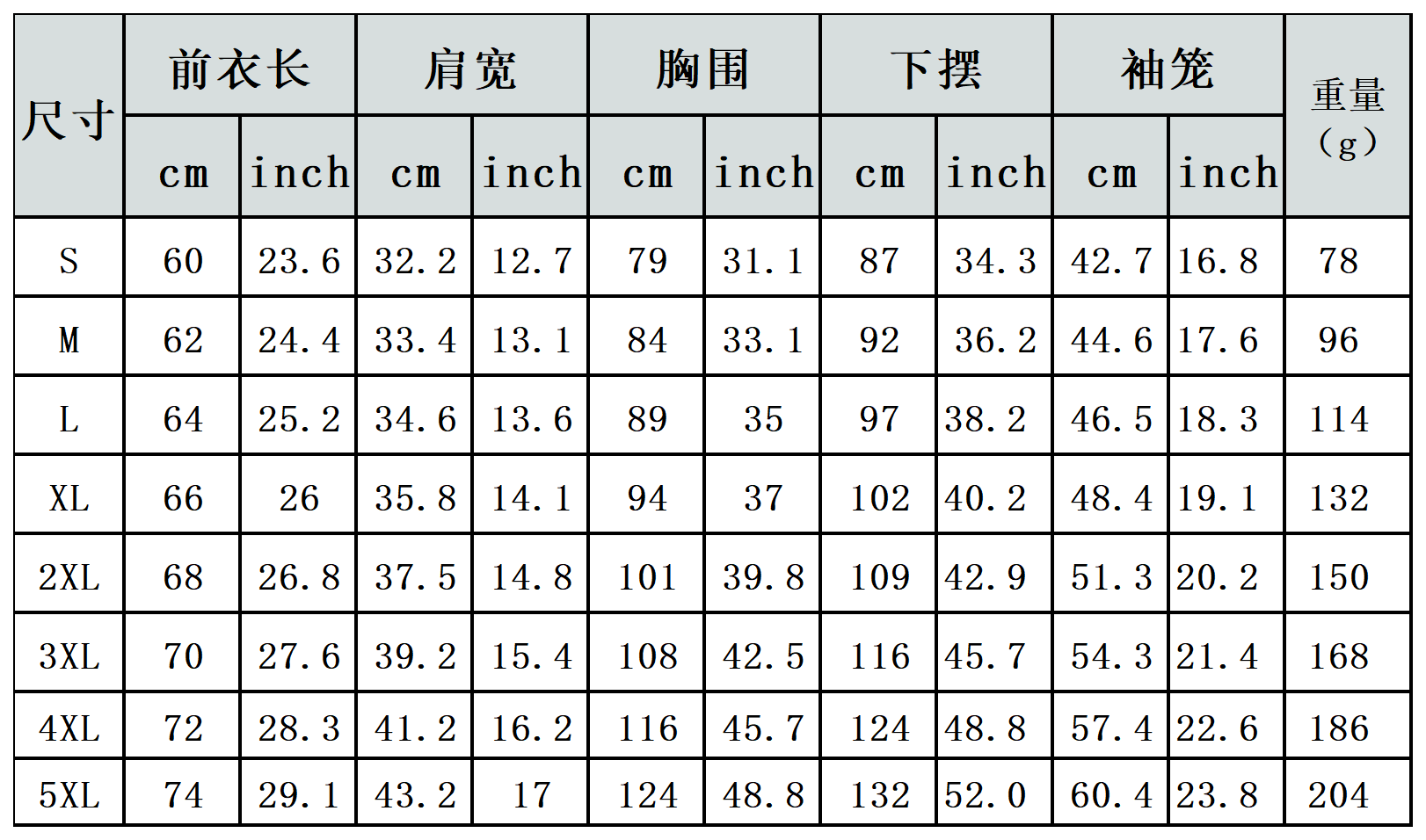 【特别说明】此尺码数据在衣服平铺下测量所得,因测量方法不同,误差在1-3cm内的属于正常现象。