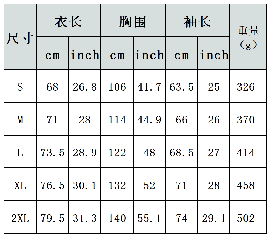 【特别说明】此尺码数据在衣服平铺下测量所得,因测量方法不同,误差在1-3cm内的属于正常现象