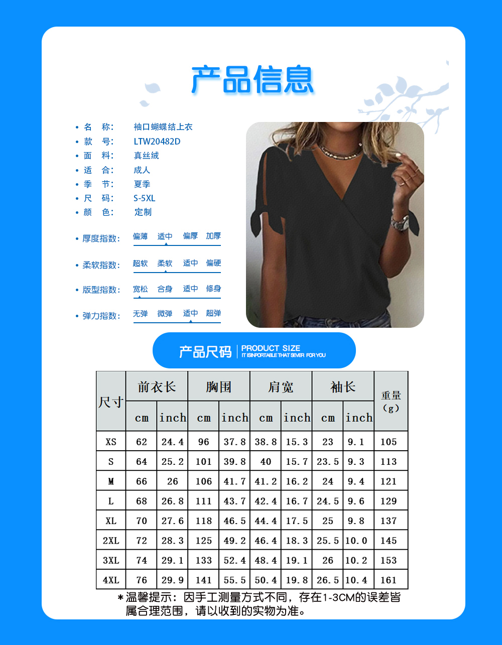 中文名称:女真丝绒V领袖口蝴蝶结上衣推码版英文名称:产品货号:LTW20482D生产工艺: 满印印花产品材质:真丝绒
