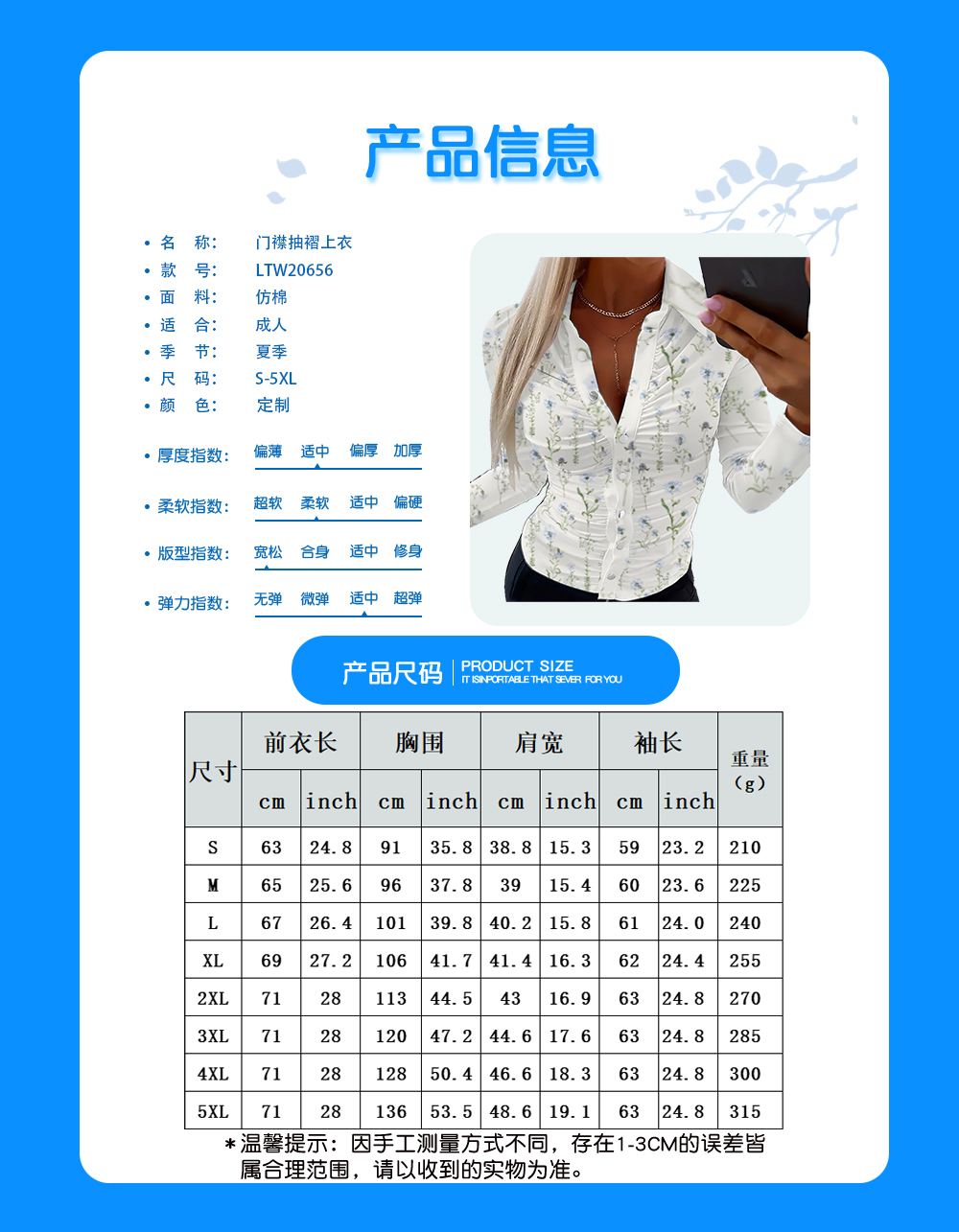 其他描述:开衫订纽扣门襟抽褶