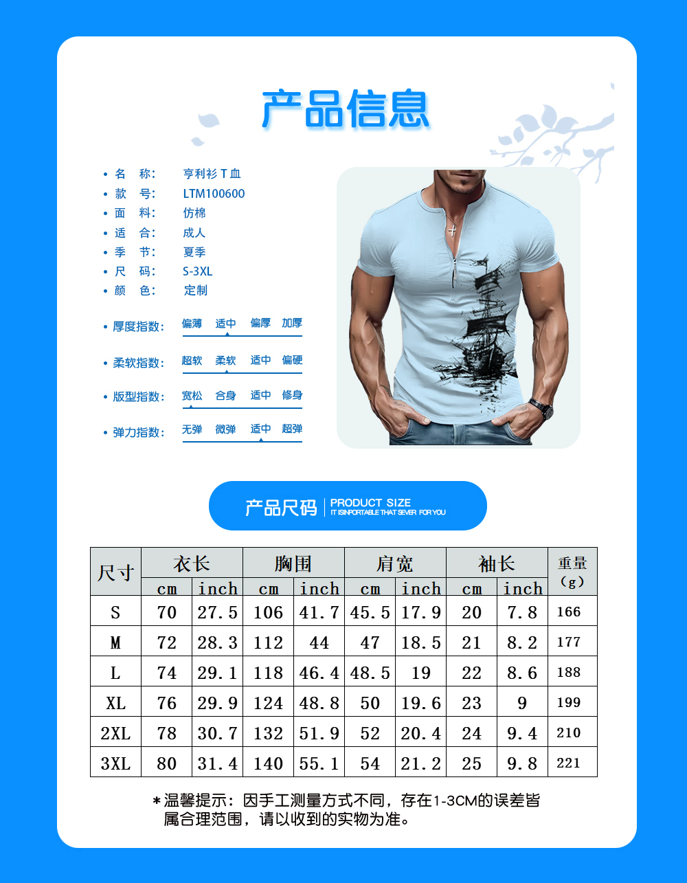 中文名称:亨利衫T血英文名称:产品货号:LTM100600生产工艺: 满印印花产品材质: 涤纶(Polyester)