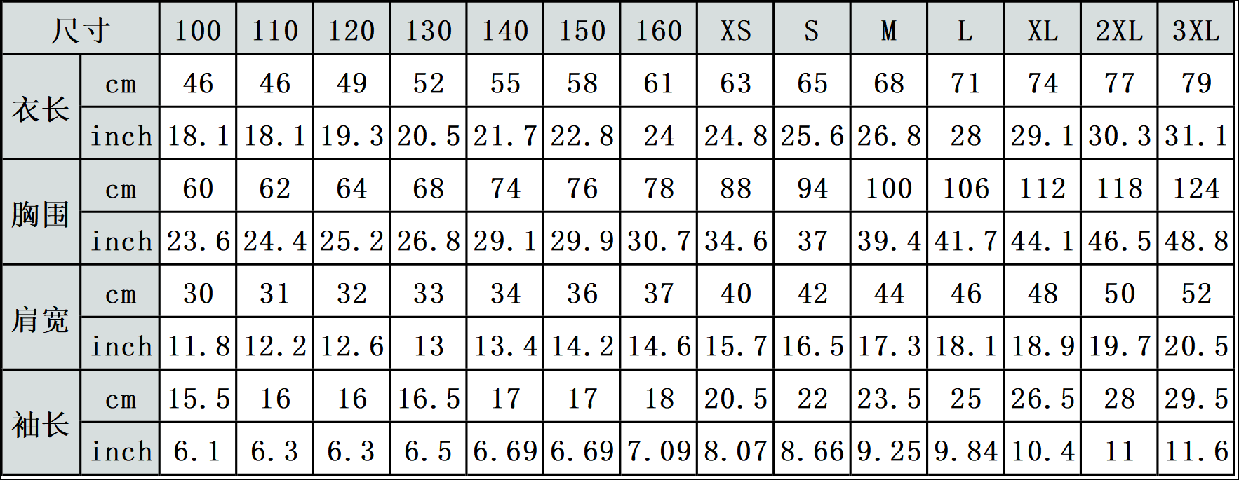 【特别说明】此尺码数据在衣服平铺下测量所得,因测量方法不同,误差在1-3cm内的属于正常现象