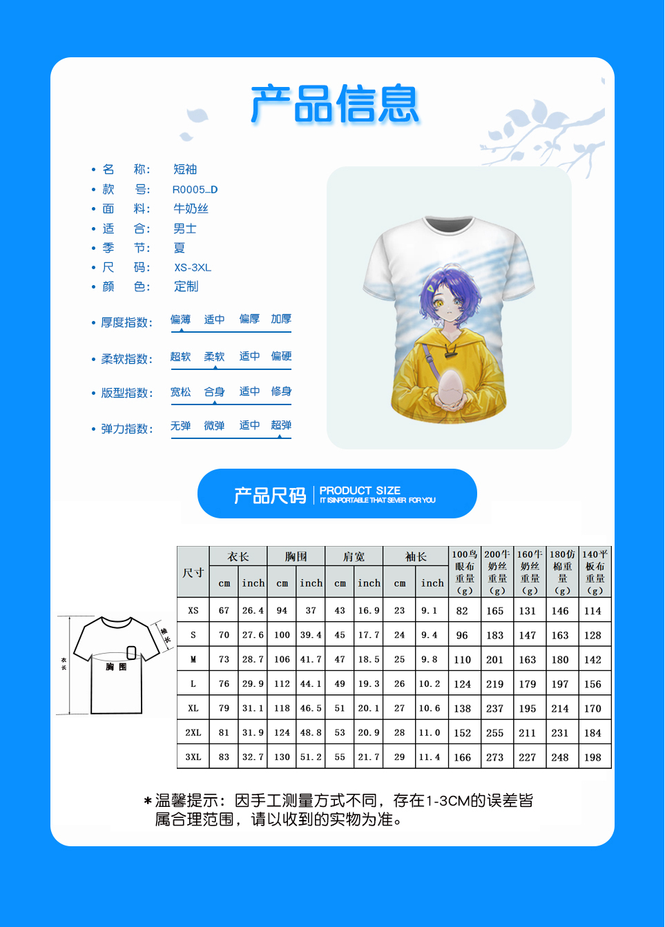 【特别说明】此尺码数据因测量方法不同,误差在1-3cm内的属于正常现象。